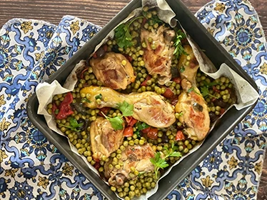 Nous vous recommandons de préparer le délicieux poulet aux petits pois, voici la recette :
